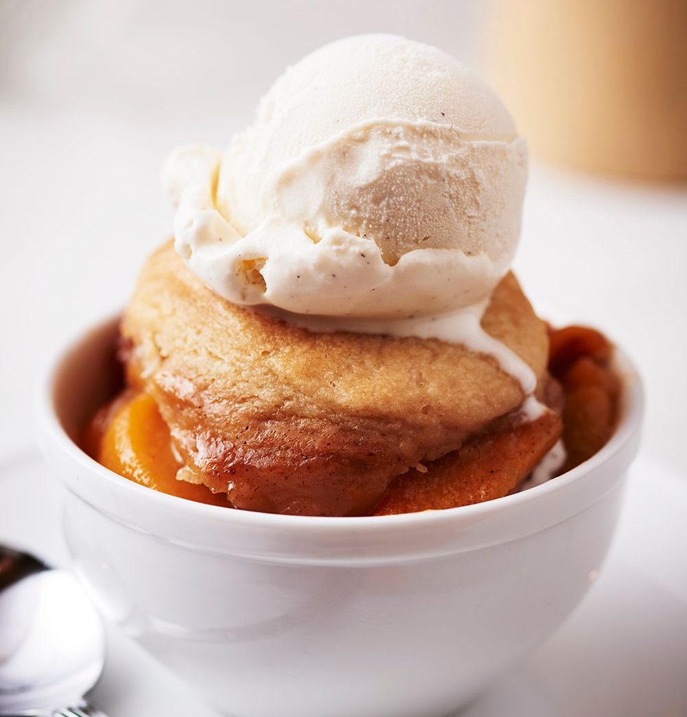 Peach cobbler is a beloved Southern dessert, and each city has its own twist. Originally created by settlers when they first arrived in the US, it is called cobbler because the lumpy, haphazardly placed biscuit dough resembles the appearance of a cobbled stone pathway when baked.