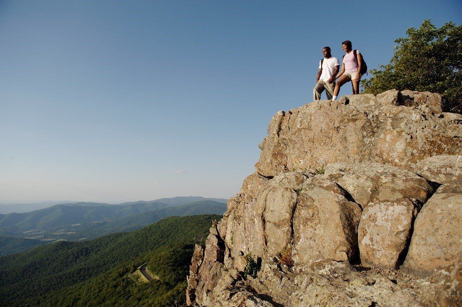 Skyline Drive, which winds its way south all the way to The Blue Ridge Parkway. Whether you just drive, stopping at the many incredible overlooks, or pause to hike through wooded hollows to a cascading waterfall, Shenandoah