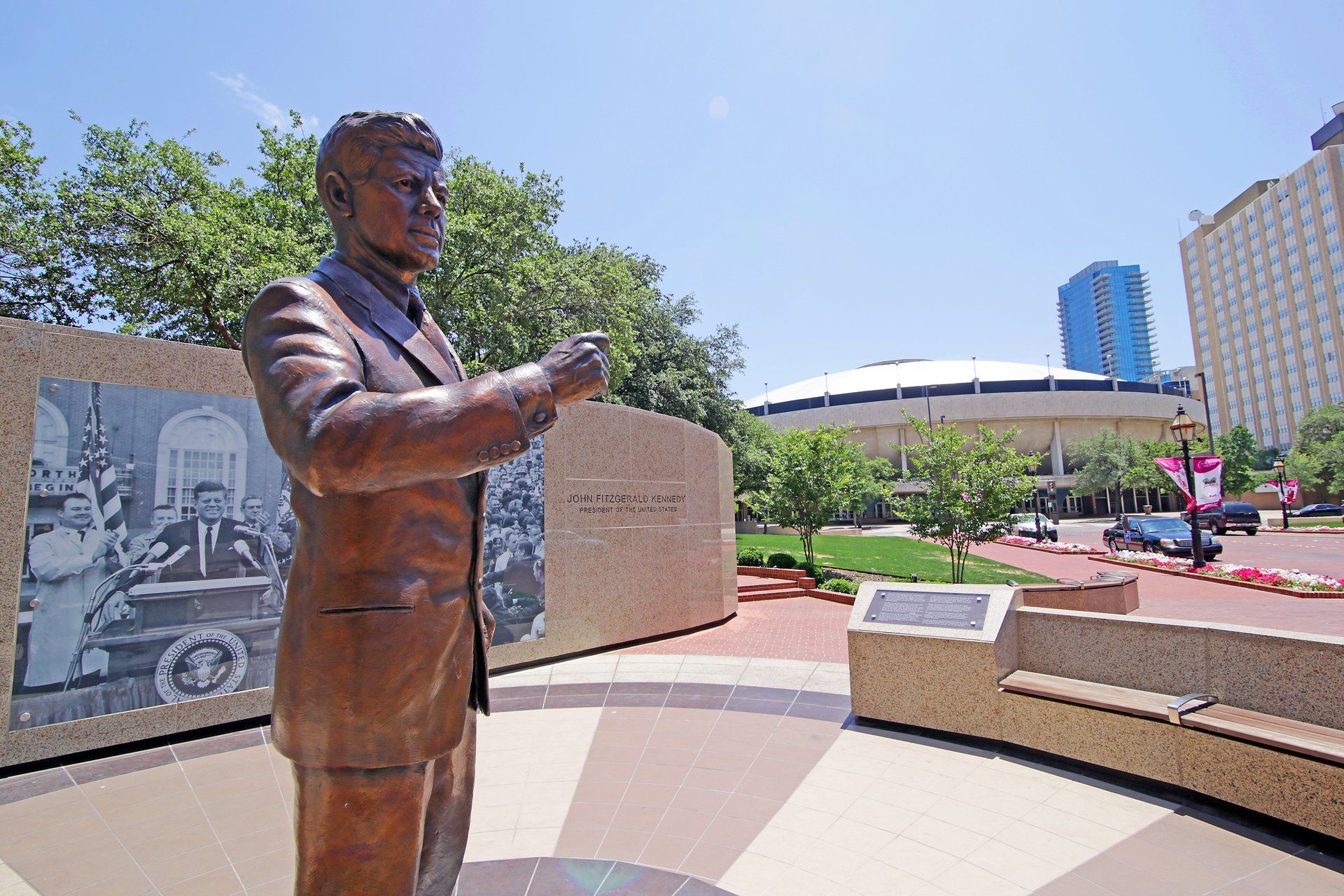 . JFK Tribute: The JFK Tribute in General Worth Square marks the place and occasion of President Kennedy's historic visit to Fort Worth. Admire the tribute which includes an 8-foot bronze statue, visuals and internet base teaching guides. You can also download the JFK Tribute mobile app for an audio tour and to see pictures and videos of the former President's historic visit. See the JFK Tribute at the Southeast corner of Main and 8th Street.